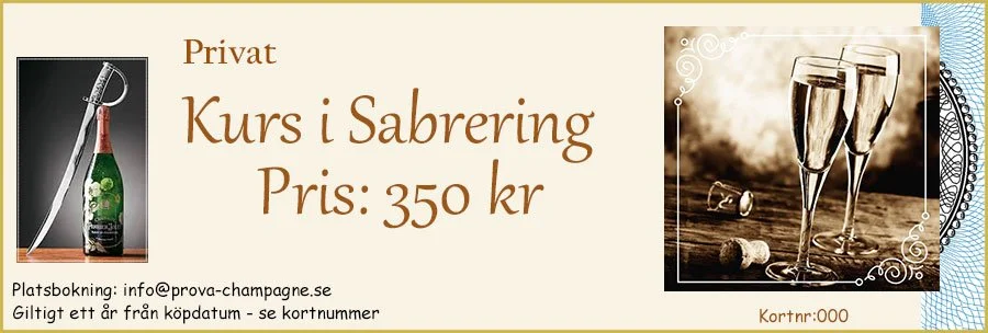 - Vill du sabrera i grupp; gå med i: Confrérie du Sabre d'Or Sverige - Grönkapporna eller Confrérie des Sacres de la Champagne - Blåkapporna